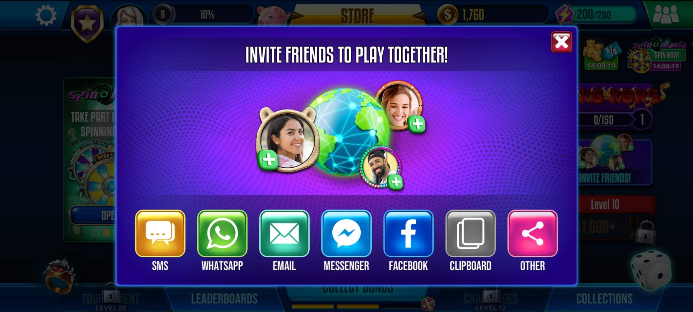 - Also, you can tap the FRIENDS icon and the INVITE FRIENDS button. You will find a list of platforms via which you can invite your friends.