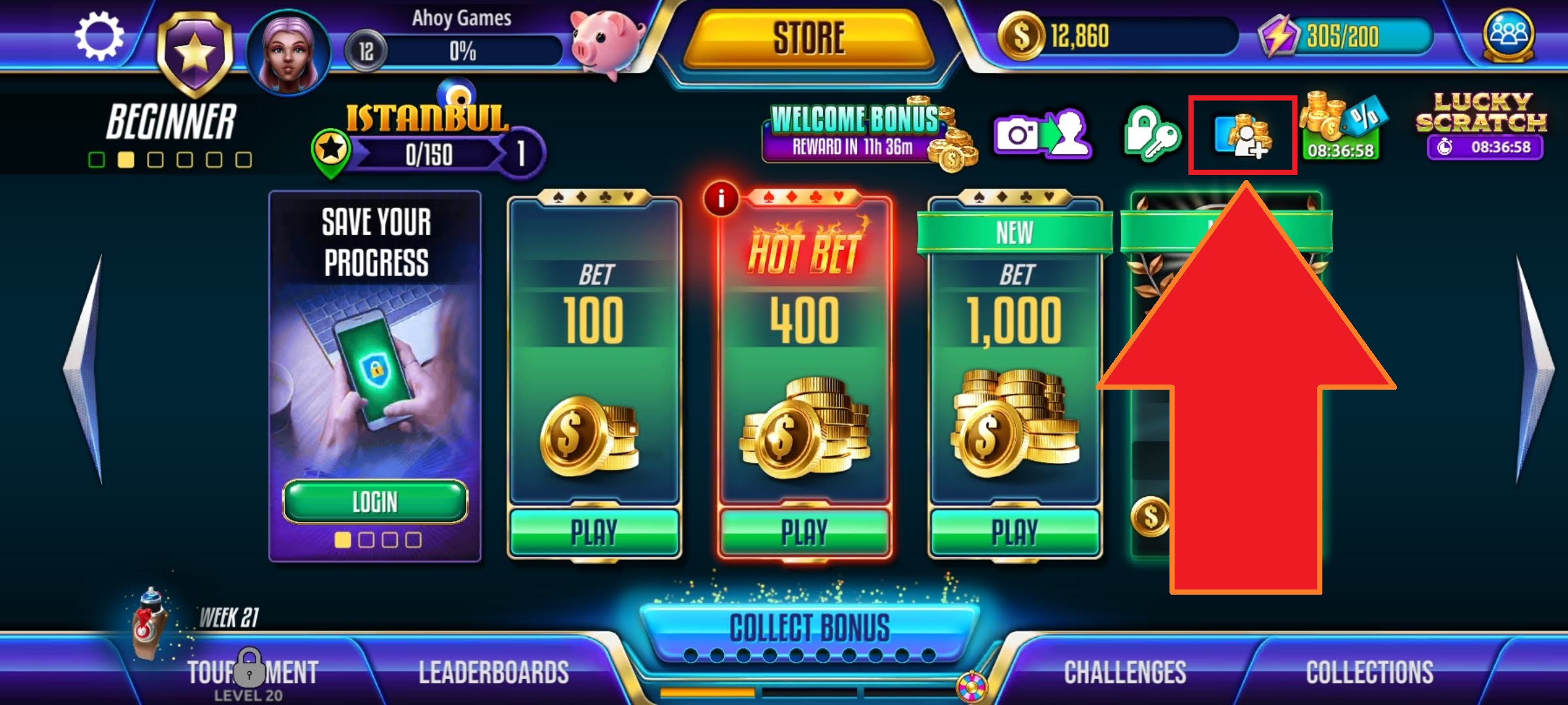 • If you want to add users you’ve already played with, tap the FRIENDS button and then tap the avatar of the particular player. Select ADD FRIEND.